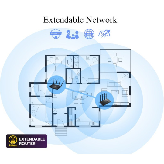 TUF Gaming AX3000 V2 Dual Band WiFi 6 Gaming Router with Mobile Game Mode, 3 steps port forwarding, 2.5Gbps port, AiMesh for mesh WiFi, AiProtection Pro network security Ultrafast WiFi 6 - Enjoy speeds up to 3000 Mbps and 4X network efficiency with OFDMA and 160 MHz channels. True Multi-Gigabit wired speeds - Aggregated 2 Gigabit LAN connections, wired 2.5Gbps port and WiFi 6. Easy Port Forwarding in 3 Steps - Open NAT makes port forwarding simple, eliminating frustrating and complicated manual configuration. ASUS AiMesh Support – Create a flexible, seamless whole-home mesh network with AiMesh-compatible routers. Tested Durability and Stable Operation - TUF Gaming AX3000 V2 is built to be durable and undergoes verified testing to ensure reliable, stable operation. 802.11a : up to 54 Mbps 802.11b : up to 11 Mbps 802.11g : up to 54 Mbps WiFi 5 (802.11ac) (1024QAM) : up to 867 Mbps WiFi 6 (802.11ax) (2.4GHz) : up to 574 Mbps WiFi 6 (802.11ax) (5GHz) : up to 2402 Mbps 2.4GHz 2x2 5GHz 2x2 RJ45 for 2.5 Gigabits BaseT for WAN x 1, RJ45 for Gigabits BaseT for LAN x 4, USB 3.2 Gen 1 x 1,.