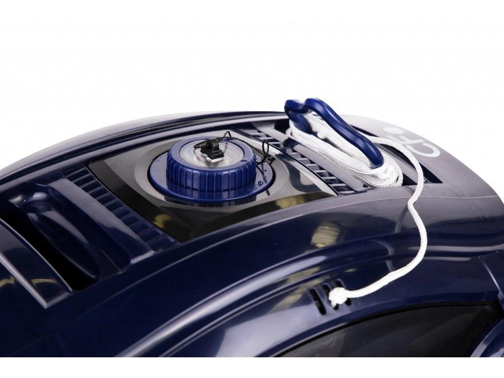 Vysávač vyčistí celé dno vášho bazéna a na konci cyklu sa sám zaparkuje pri stene bazéna, aby ste ho mohli vytiahnuť z bazéna pomocou plávajúcej rukoväte. Vysávač je vhodný pre všetky typy bazénov na trhu. Vďaka svojmu filtračnému sietu vás zbaví všetkých nečistôt v bazéne. Jemnosť filtra 180 mikrónov je dostatočná na vysatie väčšiny nečistôt (veľkosť zrna filtračného piesku sa pohybuje okolo 600 mikrónov). Na zabezpečenie čo najlepšieho výsledku odporúčame po každom čistiacom cykle vyprať vysávač a filtračnú sieť čistou vodou.