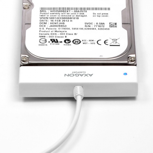 Kompaktný adaptér AXAGON ADSA-1S SLIMport s USB 2.0 rozhraním určený pre jednoduché pripojenie 2.5" SATA disku.
