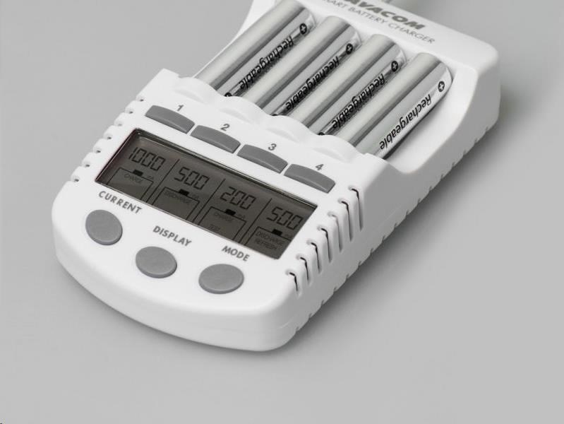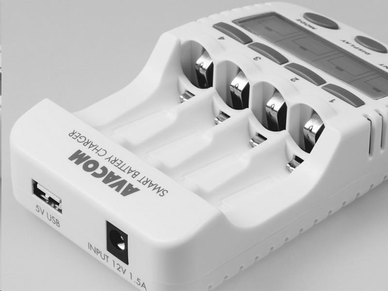 Inteligentná štyrikanálová nabíjačka tužkových AA a mikrotužkových AAA batérií. Nabíja Ni-MH a Ni-Cd batérie. Nabíjací prúd 200, 500, 700, a 1000mA.