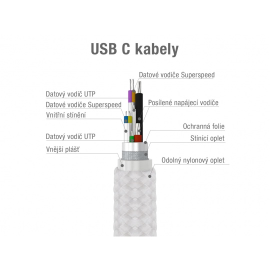 kvalitný dátový a nabíjací kábel s konektormi USB A 3.0 (M) - USB Type-C 3.1 (M) s maximálnou prenosovou rýchlosťou 5 Gb/s, čo je 10× rýchlejšie ako štandardné USB 2.0.