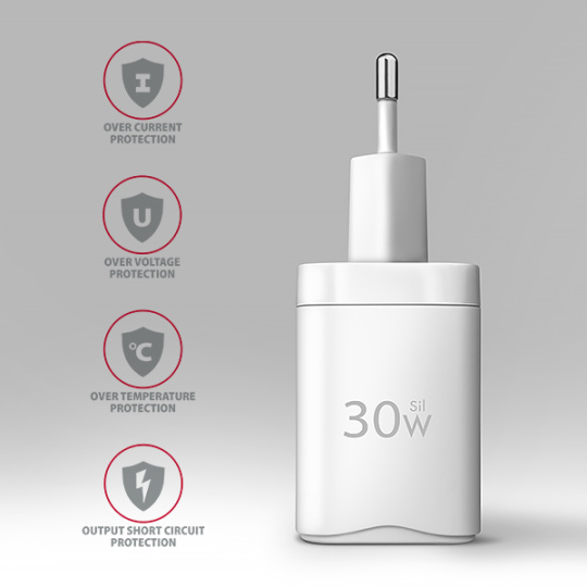 Kompaktní veľkosť a vysoký výkon je daný použitou novou Sil technologií. Super silicon využíva vyspělé materiály na bázi křemíku. Nabíječka tak môže dosiahnuť menších rozmerů a súčasne bezpečného, stabilného a rychlého nabíjení. Účinnosť je tak shodná s GaN technologií pri zachove priaznivé ceny. Nabíječka je vybavená výstupem Power Delivery 3.0 / Quick Charge 4+ USB typu C, čo umožňuje rýchle nabíjení smartphonů a tabletů výkonem až 30W.