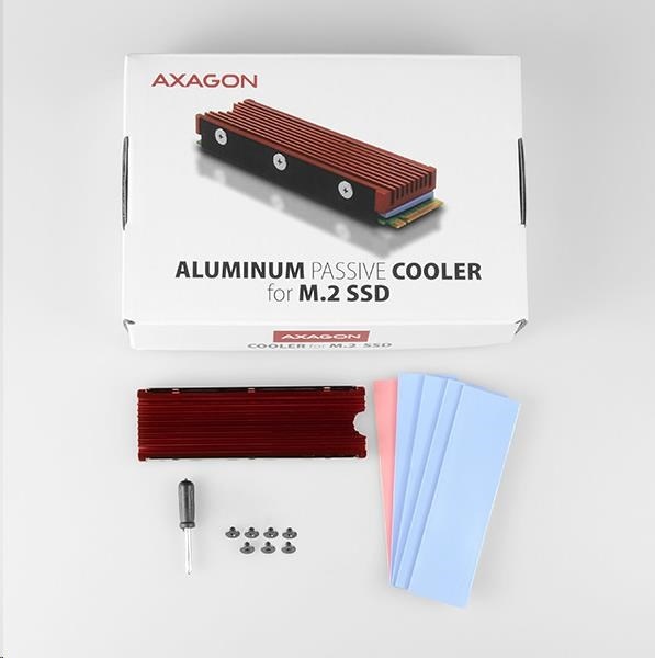 AXAGON CLR-M2, hliníkový pasívny chladič pre jedno aj obojstranný M.2 SSD disk, výška 12 mm