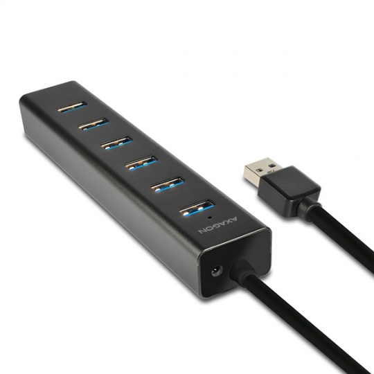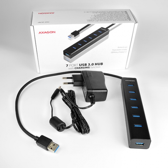 AXAGON HUE-SA7BP, 7x USB 3.0 ALU CHARGING hub, vr. AC adaptéra, kábel USB-A 40cm