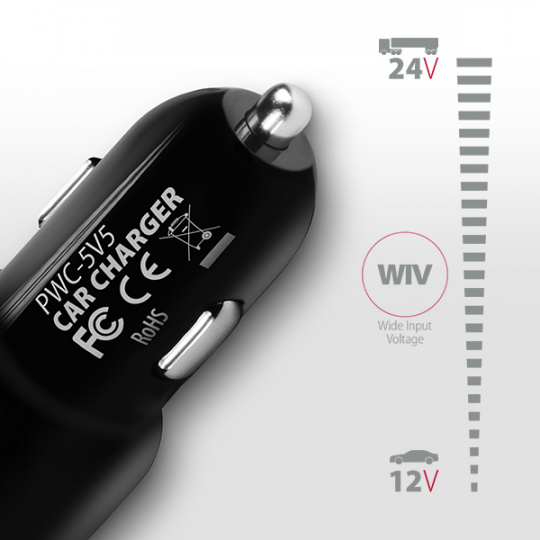 AXAGON PWC-5V5, SMART nabíjačka do auta, 2x port 5V-2.4A + 2.4A, 24W
