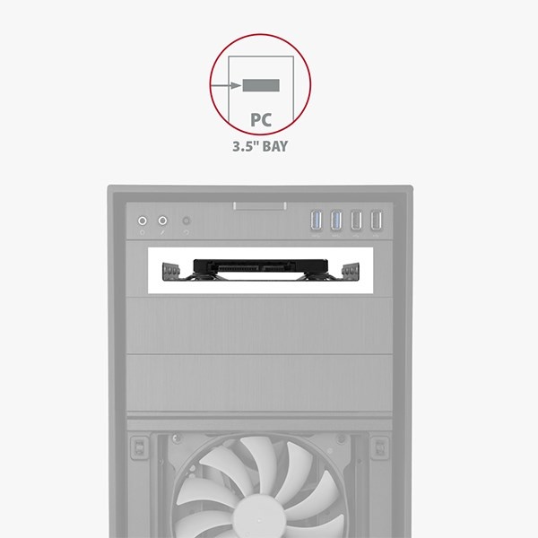 Presné otvory a dodané skrutky zabezpečujú jednoduchú a bezproblémovú inštaláciu rámu do počítačovej skrine. Kovová konštrukcia a profil rámu pomáhajú odvádzať teplo z disku.