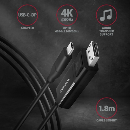 AXAGON RVC-DPC, redukcia / kábel USB-C -> DisplayPort 1.8 m, 4K/60 Hz