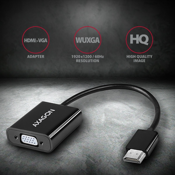 HDMI -> VGA aktívny adaptér AXAGON RVH-VGAN s audio výstupom pre pripojenie staršieho VGA monitora/TV/projektora k počítaču alebo inému zariadeniu s výstupom HDMI. Redukciu je možné použiť aj so set-top boxy alebo hernými konzolami Xbox a PlayStation.