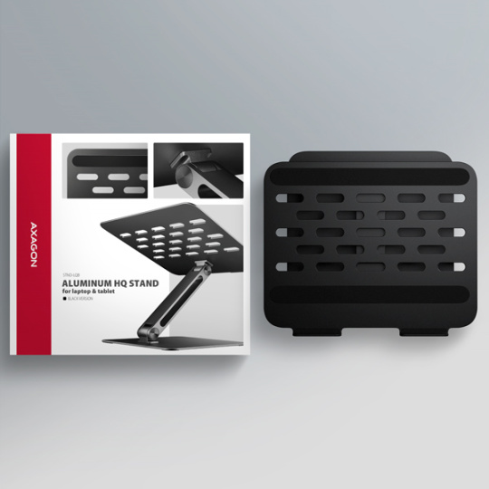 AXAGON STND-LQB hliníkový HQ stojan na notebook 10"-17.3" nastaviteľná výška a uhol, čierny