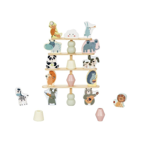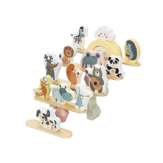 Drevená balančná hra s veselé zvieratká, doskami, kockami a s dúhou, je multifunkčná hračka, s ktorou si užijú veľa zábavy deti aj celá rodina. Pri tejto balančnej hre môže balansovať všetko, čo nájdete v balení. Akú vysokú pyramídu a čo všetko na jej výstavbu deti použijú, je čisto na ich fantáziu. Pri balančnej hre deti zdokonaľujú jemnú motoriku, koordináciu, logické myslenie, priestorovú predstavivosť, učia sa sústrediť sa a trpezlivosti.
