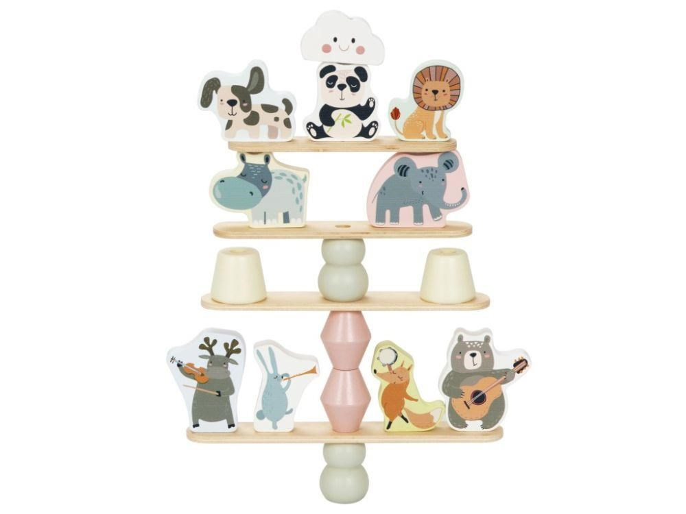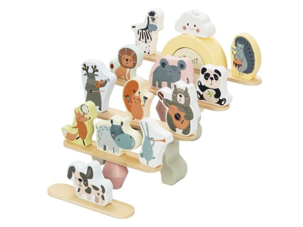 Drevená balančná hra s veselé zvieratká, doskami, kockami a s dúhou, je multifunkčná hračka, s ktorou si užijú veľa zábavy deti aj celá rodina. Pri tejto balančnej hre môže balansovať všetko, čo nájdete v balení. Akú vysokú pyramídu a čo všetko na jej výstavbu deti použijú, je čisto na ich fantáziu. Pri balančnej hre deti zdokonaľujú jemnú motoriku, koordináciu, logické myslenie, priestorovú predstavivosť, učia sa sústrediť sa a trpezlivosti.