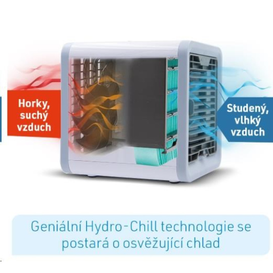 Pomocou svojej Hydro-Chill technológie sa prístroj postará o príjemný chlad vo vašom bezprostrednom okolí a to pomocou odparovania čistej vody. Chladný, vlhký vzduch sa rozptýli rovnomerne a prirodzene, inak ako u bežných klimatizačných zariadení využívajúcich chemické prostriedky a zbytočne zaťažujú vaše telo.