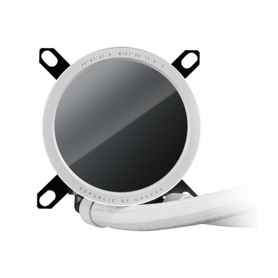 ROG Ryuo III 360 white edition all-in-one liquid CPU cooler with Asetek 8th gen pump solution, Anime Matrix™ LED Display and ROG ARGB cooling fans