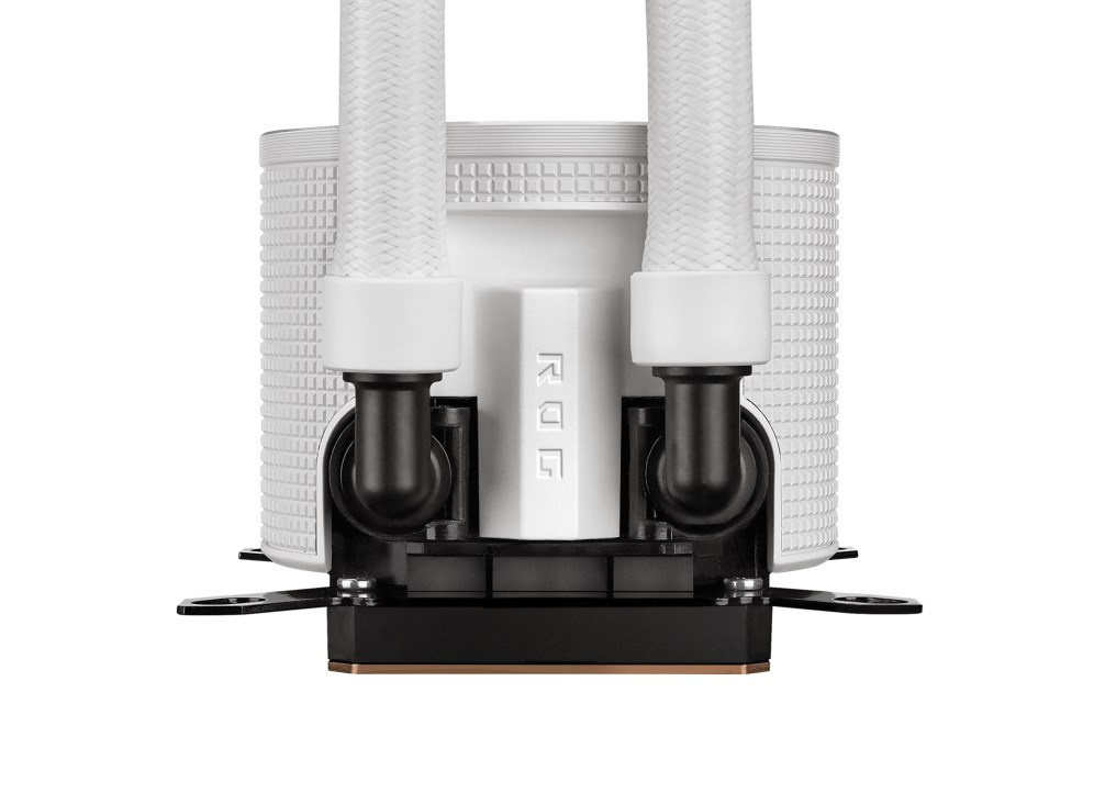 ROG Ryuo III 360 white edition all-in-one liquid CPU cooler with Asetek 8th gen pump solution, Anime Matrix™ LED Display and ROG ARGB cooling fans
