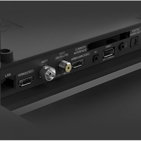 Vstupy a výstupy AV vstup mini, CI+, sluchátkový vstup 3.5 mm, digitální audio výstup, HDMI 1.4, USB 2.0, LAN, antény RF a LNB