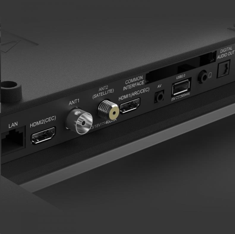 Vstupy a výstupy AV vstup mini, CI+, sluchátkový vstup 3.5 mm, digitální audio výstup, HDMI 1.4, USB 2.0, LAN, antény RF a LNB