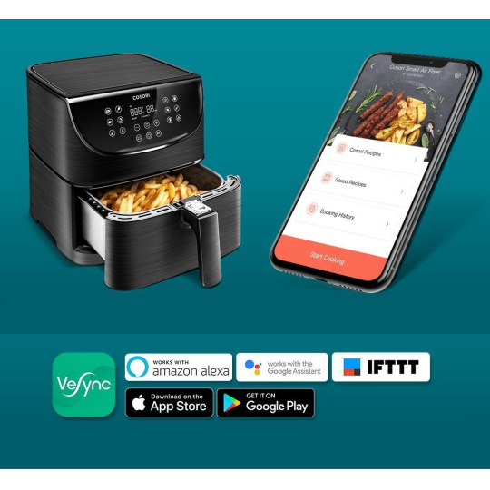 Teplovzdušná fritéza COSORI CP158-AF má 6l varný priestor a 5,5l kôš s praktickým štvorcovým tvarom, vďaka čomu uspokojí aj početnejšie domácnosti. S výkonom 1700 W je fritéza extrémne výkonná, čo skracuje dobu varenia a šetrí tak elektrickú energiu. Vďaka veľkosti varného priestoru fritézy je možné pripraviť napríklad aj celé 3kg kura v kuse, ktoré by sa do fritézy s kruhovým košom alebo objemom 3-4l zmestilo len veľmi ťažko.