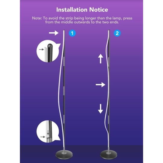 Lampa Govee Smart Corner Floor Lamp je kompatibilná s asistentmi Alexa, Google Assistant a Siri. Teraz môžete Govee Smart Corner Floor Lamp zapnúť/vypnúť, upraviť úroveň jasu alebo zmeniť ich farbu pomocou hlasových príkazov z pohodlia vašej pohovky alebo postele. Ovládanie lampy je možné tiež priamo na paneli alebo cez aplikáciu vo vašom smartfóne alebo tablete.