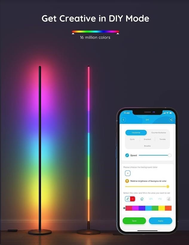 Vylepšite si svoj domov inteligentnou rohovou lampou Govee Smart Corner Floor Lamp, ktorá upúta na prvý pohľad. Ponúka 16 miliónov farieb s 64 farebnými režimami a 6 režimami pre synchronizáciu s hudbou. Svetlo sa ovláda hlasom cez Siri, Amazon Alexa alebo Google Assistant, cez aplikáciu na chytrých telefónoch a tabletoch s operačnými systémami iOS a Android alebo cez integrovaný ovládač. Lampa je vybavená úspornou LED žiarovkou s technológiou RGBICWW, ktorá umožňuje zobrazenie viacerých farieb naraz a má dlhú životnosť 50.000 hodín. Farbu teploty môžete upravovať v rozmedzí od 3300K do 4300K pri maximálnej svietivosti až 1000 lumenov.