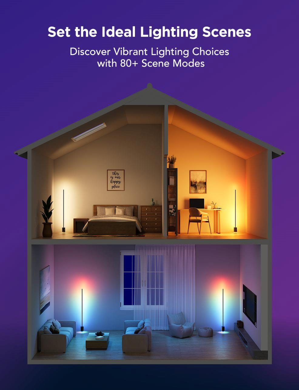 Floor Lamp 2 je nová generácia podlahových lámp od Govee. Novinka je minimalistická podlahová lampa, navrhnutá tak, aby dokonale zapadla do akéhokoľvek interiéru. Jednoducho sa hodí všade, pretože je v zhasnutom stave veľmi nenápadná. Všetko sa zmení po aktivácii, keď sa prebudí jej 1725 lumenov. Vďaka diódam s technológiou 4 v 1 RGBICWW dosahuje svetlo ohromujúcej intenzity. K dispozícii je cez 16 miliónov farieb alebo biela ladená od 2200 do 6500 K. Lampa meria takmer 1,52 metra, ale zaberá minimálny priestor a možno ju tak umiestniť doslova kamkoľvek. Najviac jej to však pristane v rohu, kde osvetlí maximálny priestor za sebou a vykúzli na vašich stenách úžasne plynulé farebné prechody. Životnosť lampy je u Govee štandardne 50.000 hodín. Ovládanie je možné aplikáciou Govee Home, Google Home, pomocou asistentov Google, Apple či Amazon. Novinkou je k pripojeniu ponúkaný aj protokol MATTER, takže lampu môžete používať s väčšinou súčasných smart home systémov. Pre maximálne pohodlie nájdete v balení aj klasický diaľkový ovládač, ktorý je kedykoľvek v pohotovosti, pripojený priamo k lampe. Samozrejmosťou sú prednastavené scény, niekoľko režimov synchronizácie s hudbou a ak si ani tak nevyberiete, čaká na vás DIY režim, ktorý vám dá 100% kontrolu, pri ktorej je jediným limitom vaša predstavivosť.