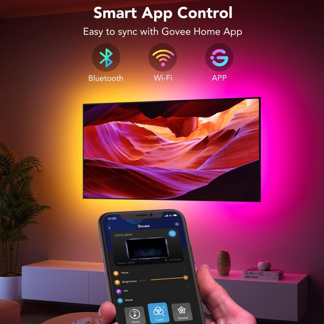 LED pásik sa ľahko ovláda prostredníctvom aplikácie Govee Home, kde môžete nastaviť farby, režimy a intenzitu osvetlenia. Vďaka integrácii s hlasovými asistentmi Alexa a Google Assistant môžete osvetlenie pohodlne ovládať aj hlasom. Podpora inteligentnej domácnosti zaisťuje rýchlu personalizáciu a maximálny komfort pri každodennom používaní.