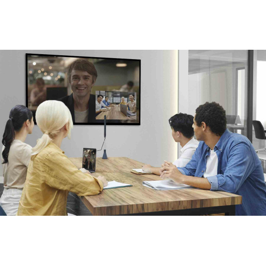 Prepnite medzi ultraširokouhlým objektívom so zábernosťou 120° a objektívom s automatickým zaostrovaním so zábernosťou 80°, aby ste získali dokonalý výhľad podľa svojho scénára. Ultraširokouhlý objektív je ideálny pre konferencie v zasadačke alebo prezentácie. Objektív s automatickým zaostrovaním predstavuje praktickú alternatívu pre zdieľanie dokumentov a individuálne videohovory.