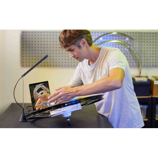 Je možné ju tiež nasmerovať nadol pod uhlom 45°, aby ste mohli predvádzať produkty, výukové programy alebo zobrazovať čokoľvek, čo potrebujete počas online spolupráce.