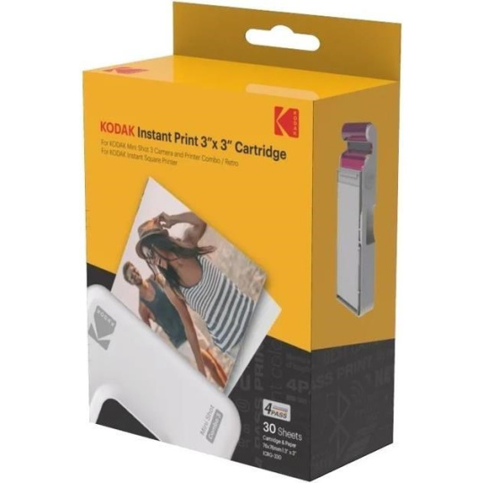 Kazeta KODAK 4PASS All-in-One Cartridge ICRG-360 je kompatibilná s tlačiarňami KODAK Mini 3 a Mini Shot 3. Každé balenie obsahuje 1 krabičku s 3 kazetami, čo vystačí na tlač celkom 30 fotografií.