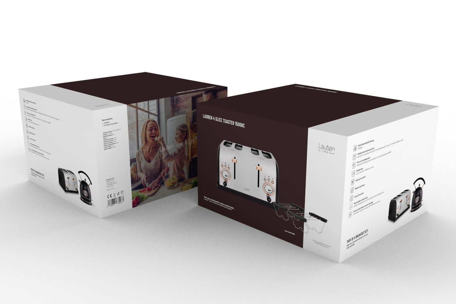 Luxusní design Lauben 4 Slice Toaster 1500BC z nerezové oceli tvoří dokonalý pár s rychlovarnou konvicí Lauben Kettle 17BC s ukazatelem teploty. Tento snídaňový set se stane ozdobou vaší kuchyně, a aby dojem nic nerušilo, překážející kabel lze uschovat do dna základny, kde je pro něj vytvořen prostor.
