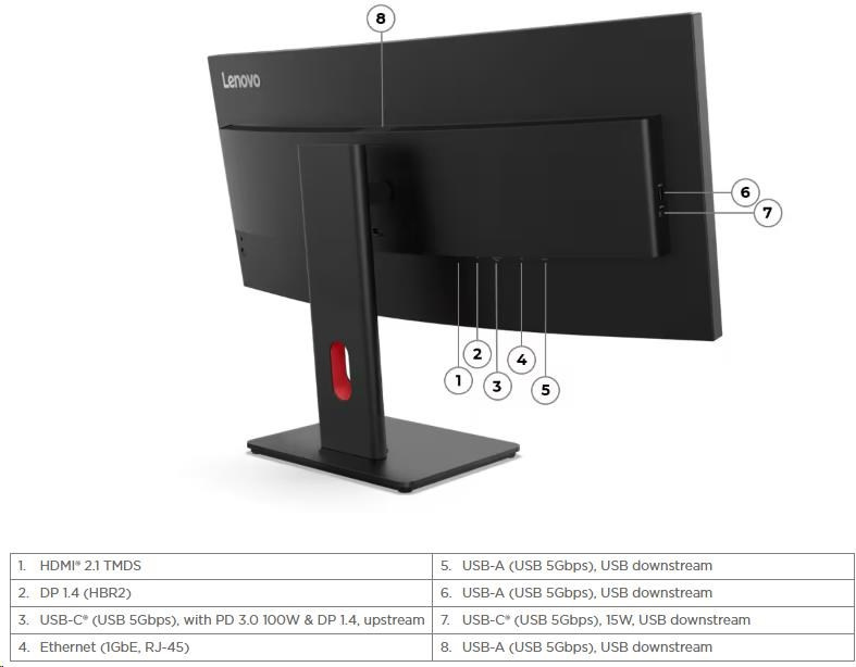 BAZAR - LENOVO LCD T34WD-40 - 34",VA,matný,21:9,3440x1440,120Hz,4ms,300cd,3000:1,HDMI,DP,USB-C,PD100W,RJ45 - pošk. obal