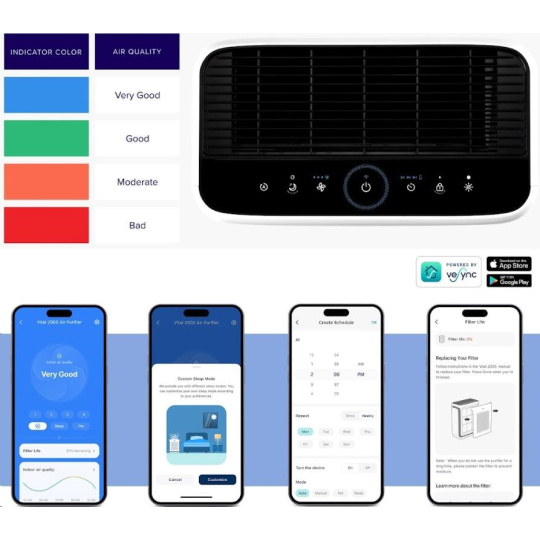 Chcete mať doma čistý vzduch ako prevenciu pred ochorením horných dýchacích ciest alebo ste alergik či astmatik? Inteligentná čistička Levoit Vital 200S PRO vďaka vysoko kvalitnej 3 vrstvovej filtrácii s filtrom HEPA H13 a umývateľným predfiltrom odstráni až 99,99% škodlivých látok a nečistôt, ktoré by ste inak dýchali. Čistička Levoit Vital 200S PRO je certifikovaná pre alergikov a disponuje výkonom 416 m3/h CAD pri 50W. Vďaka energeticky nenáročnej prevádzke získala ocenenie Energy Star. Ovládanie čističky vzduchu je vskutku jednoduché priamo na displeji alebo sa ponúka ovládanie cez aplikáciu na chytrých zariadeniach Android alebo Apple (iOS). Levoit Vital 200S PRO je vybavený senzorom snímania kvality vzduchu na základe ktorého vie sám múdro upravovať výkon čistenia.