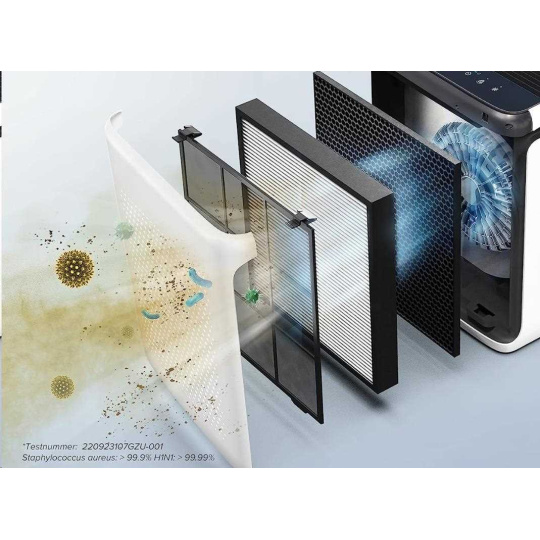 Filtrácia vzduchu prebieha v 3 vrstvách. Prvý je vonkajší umývateľný predfilter, ktorý zachytáva najhrubšie častice ako prach, vlákna, časti vlasov alebo chlpov.