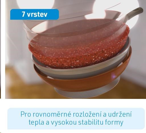 Tajomstvo panvice spočíva v jej vrstvách. Hliníkové teliesko je kombinované s extra silnou oceľovou vložkou. Jej základ tvorí odolná kamenná vrstva pre nesrovnateľne dlhú životnosť a akumuláciu tepla. Meď zušľachťuje kamennú vrstvu pre dokonalé rozloženie tepla. Senzčné zloženie panvice zakončujú 3 vrstvy vysoko kvalitného neprilnavého povlaku.