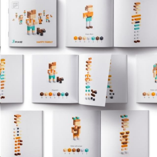 PIXIO Happy Family obsahuje 88 PIXIO blokov v 7 farbách. Oživte svoje kreatívne nápady a
