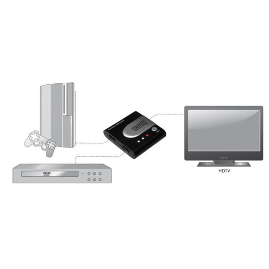 Prepínač HDMI 2 ->1 automaticky 2 zariadenia HDMI zdieľajú 1 zariadenie HDMI (obrazovku). Výber zariadenia je buď automatický, alebo pomocou tlačidla. Podporuje 20m kábel HDMI na vstupe, až 25m kábel HDMI na výstupe prepínača HDMI. Podpora 3D HDMI role 480i, 480p, 720i, 720p,1080i a 1080p Podpora VGA,SVGA,XGA,UXGA režimu HDMI 1.3b 8bit, 10bit a 12bit farebná hĺbka na kanál Výber vstupu pomocou tlačidla / automaticky. Plug-and-play, nie je potrebný žiadny softvér. - Kompatibilný s HDCP V balení: 1x prepínač HDMI 1x 0.5 m pripojovací kábel HDMI..