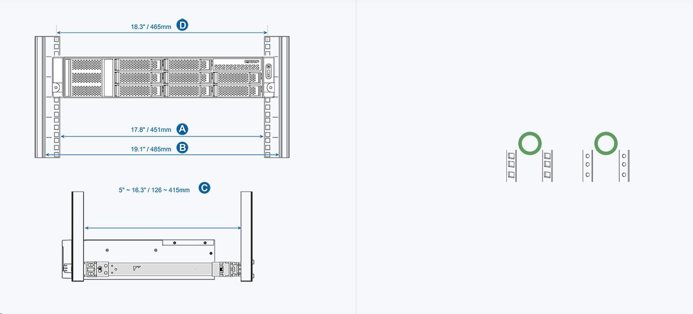 BAZAR - QNAP RAIL-S01 sada krátkých kolejnic, ližiny - Rozbaleno (Komplet)