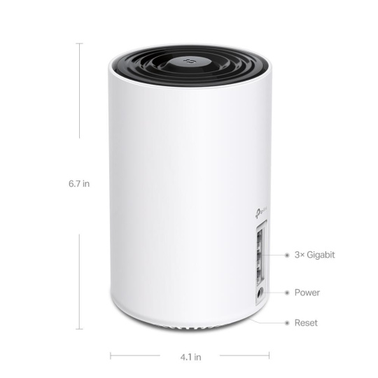 | WiFi Rozsah | 4-7+ Bedroom Houses (3-pack) 3-5 Bedroom Houses (2-pack) 1-3 Bedroom Houses (1-pack) TP-Link Mesh Technológia Voliteľná Ethernetová spätná väzba spolupracuje na spojení Deco jednotiek pre plynulé pokrytie AI-Driven Mesh Inteligentne sa učí prostredie siete, aby poskytlo ideálne Wi-Fi špecifické pre váš domov 4× vysokovýkonné antény (vnútorné) Viaceré antény tvoria signal-boosting array na pokrytie viacerých smerov a veľkých plôch Tri-pásmo Obyvatelia doby otvoreno s pásmom 6 GHz, ktoré prináša viac šírky pásma a rýchlejšie rýchlosti Beamforming Koncentruje bezdrôtovú silu signálu smerom k klientom na rozšírenie WiFi |