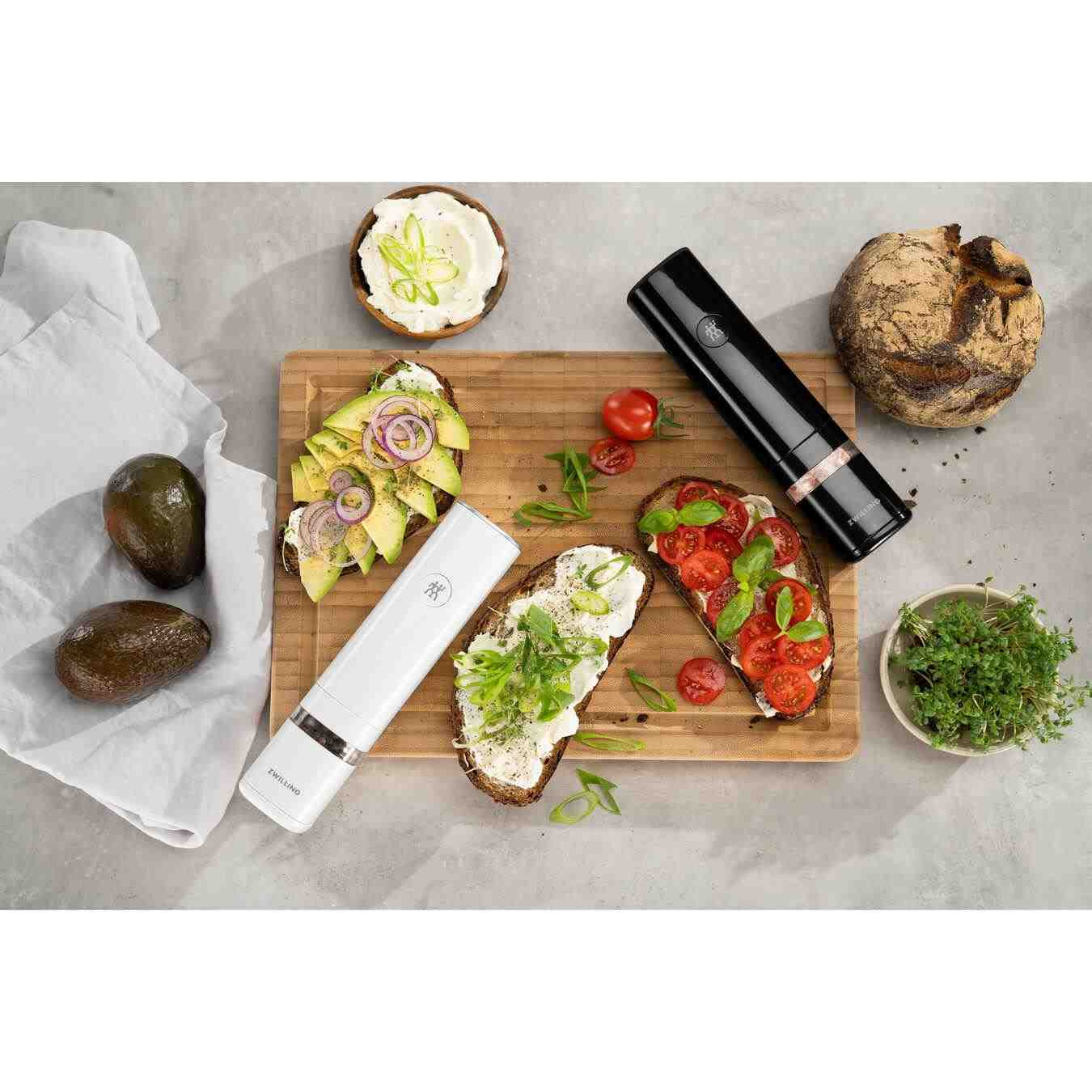 BAZAR - ZWILLING elektrické mlýnky na koření, černý a bílý, lithium-iontové baterie - Použito / opraveno