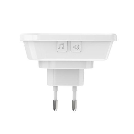 sada 1x prijímač, 2x tlačidlo funkcia „Learning code“ umožňuje spárovať viac zvončekov alebo tlačidiel do jednej skupiny: k jednému zvončeku môže byť spárovaných max. 15 tlačidiel jedno tlačidlo môže byť spárované s max. 8 zvončekmi, na každom zvončeku môže byť nastavená iná melódia 36 voliteľných melódií LED indikátor zvonenia na zvončeku aj tlačidle tlačidlo s krytom na menovku a so strechou proti dažďu vodotesná ochrana tlačidla IP56 nastavenie hlasitosti zvončeka: 4 stupne 25 - 110dB ukotvenie tlačidla pomocou samolepiacej podložky alebo montážnych otvorov farba: biela dosah signálu na otvorenom priestranstve: 200m prenášacia frekvencia: 433MHz napájanie: tlačidlo: 1 x 3V (CR2032) batéria (súčasť balenia) zvonček: AC 230V - do zásuvky spotreba energie: prijímač (zvonček) v pohotovostnom režime: <0,5W vysielač (tlačidlo) v pracovnom režime: <10mW pracovná teplota: tlačidlo -20 °C až +60 °C, zvonček -10 °C až +45 °C náhradné tlačidlo Solight č. 1L67T Typ napájania 230 V Stupeň krytia (IP) IP54 Farba Biela Dosah (m) 200