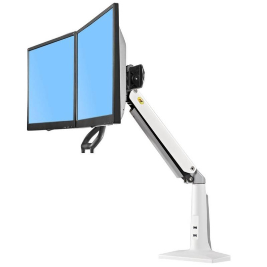 Bílý stolní držák na dva monitory NB F27W