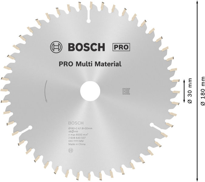 Bosch pilový kotouč PRO Multi Material pro okružní pilu, 180 × 2,4 × 30 mm