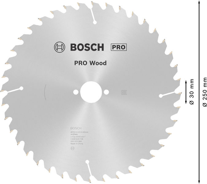 Bosch pilový kotouč PRO Wood pro okružní pilu, 250 × 3,2 × 30 mm, T40