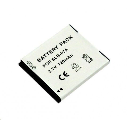 Li-Ion akumulátor Braun BDP-SLB07A (D104, Samsung SLB-07A - 3,7 V/720 mAh) pre digitálne fotoaparáty SAMSUNG Digimax ST45, ST50, ST500, ST550, ST600, TL100, TL105, TL110, TL220, TL225. Tento akumulátor je dodávaný vo čiastočne nabitom stave. Pred použitím je vhodné akumulátor nabiť. Plná kapacita akumulátora môže byť dosiahnutá až po približne 4-5 nabíjacích cykloch.