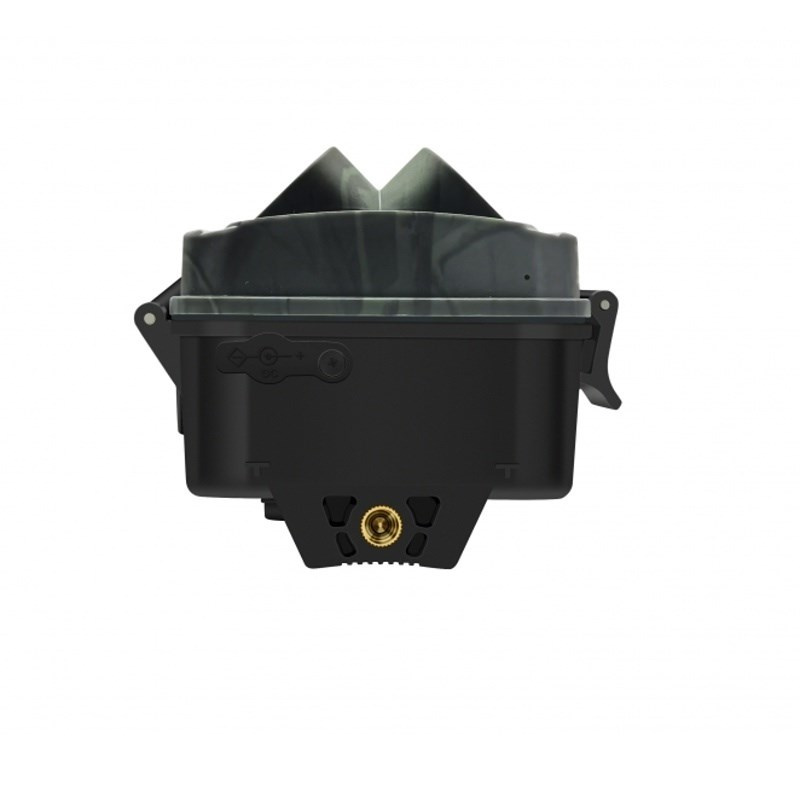 Fotopast s vysokým rozlíšením CMOS 13MP a objektívom 90°. Záznam 1-3 fotky až 48 MP alebo 3s-10min video až 4K/10fps, 3x PIR senzor 120°/ odozva 0,2s/ 40 Black IR LED do 20m, vnútorné 2" LCD, SD do 128GB, 4x alebo 8x AA batérie, rozmery 138x97x83mm, hmotnosť 264g. Vodotesný prístroj podľa IP66, farebné denné zábery a čiernobiele v noci, záznam dátumu, času, teploty a fázy mesiaca, PIR senzor má 3 citlivosti, interval medzi zábermi 5s-60min, časozberné zábery 3s-24h, stand-by 0,3mA až 6 mesiacov, mikrofón, reproduktor. Slot SD, miniUSB, DC in 6V/2A pre externý zdroj, statívový závit, možnosť uzamknutia, dizajn camouflage. V balení kábel USB, remienok a kovové uchytenie s guľovou hlavou. BlackVision LED sú vhodné aj na ostrahu proti zlodejom - nie sú vidieť ani pri priamom pohľade na fotopast pri expozícii.