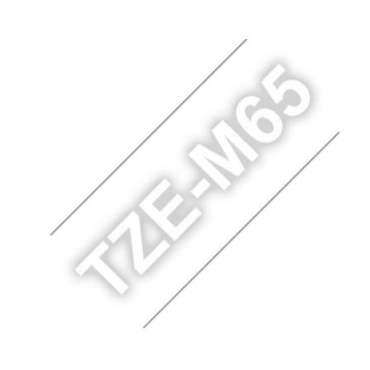 Brother TZe-M65 matná laminovaná páska, bílý tisk na čirém podkladu – šířka 36 mm.