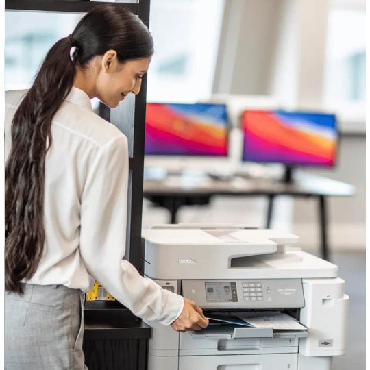 Tlačiareň MFC-J5955DW kombinuje podnikové funkcie a úsporu v jednom. Tlač až do formátu A3 a použitie podavača dokumentov formátu A4 na 50 listov umožňuje oveľa rýchlejšie a jednoduchšie kopírovanie a skenovanie než doteraz. Vďaka najnovšej technológii tlačovej hlavy MAXIDRIVE bude vaša tlačiareň fungovať kedykoľvek budete potrebovať.