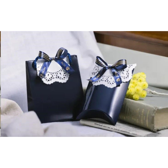 BROTHER TZE-RN34 - 12 mm široká TZ kazeta, TEXTILNÁ páska 4 m - na výrobu darčekov - NEPRIĽAHLÁ - MODRÁ PÁSKA, ZLATÝ POTISK
