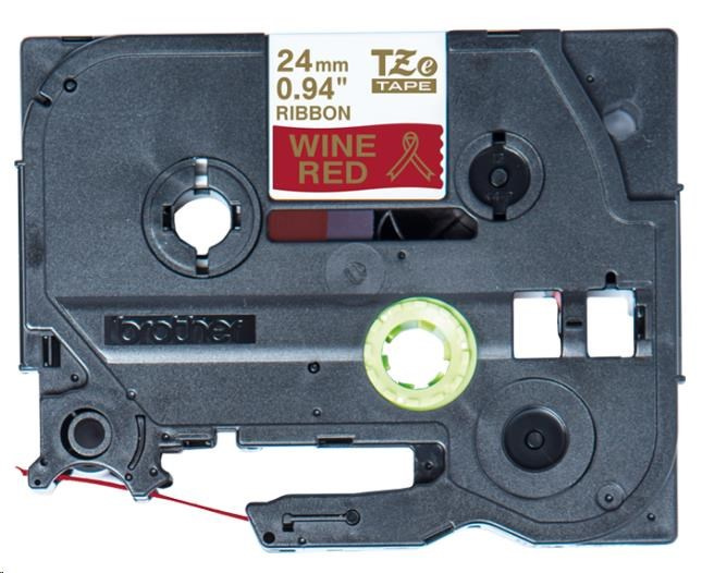 BROTHER TZE-RW54 - 24 mm široká kazeta s TZ páskou, 4 m TEXTILNÁ páska - na výrobu darčekov - NEŠTÍRIVÁ - ČERVENÁ PÁSKA, ZLATÝ POTISK