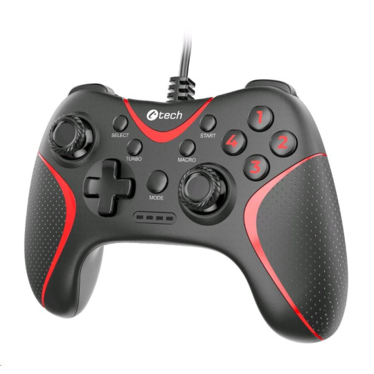 Gamepad C-TECH Theon pro PC/PS3, 2 programovateľné makro tlačidlá, 2x analóg, X-input, vibračný, 1,8m kábel, USB