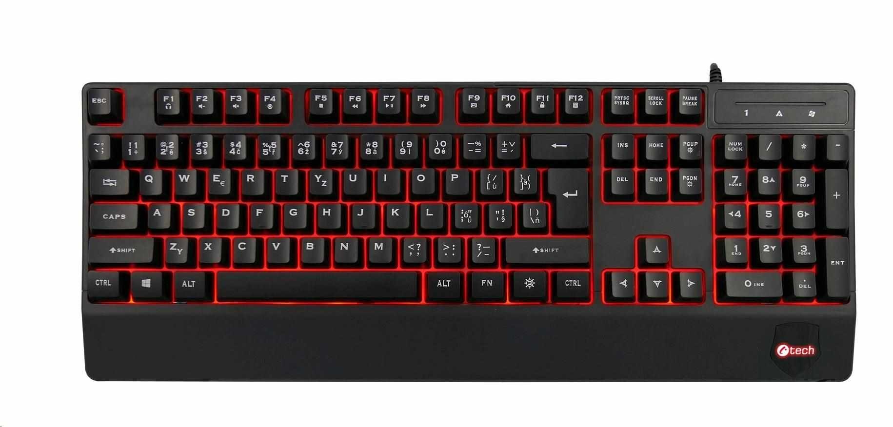 C-TECH Klávesnice KB-104BK, USB, 3 barvy podsvícení, černá, CZ/SK